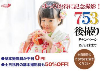 こんにちは、和歌山県のフォトスタジオ スタジオアンジェです🤗 スタジオアンジェでは七五三のシーズンオフ時も お得に記念撮影ができる 「七五三後撮りキャンペーン」を令和8年2月末まで開催し…